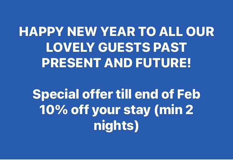 Happy New Year to all our lovely guests – we hope to see you soon! Special offer till end of Feb – 10% off your stay (min 2 nights) #bandb #visitwiltshire #visithampshire #worktrip #visitfamily #tidworth #bookingcom #greatreviews